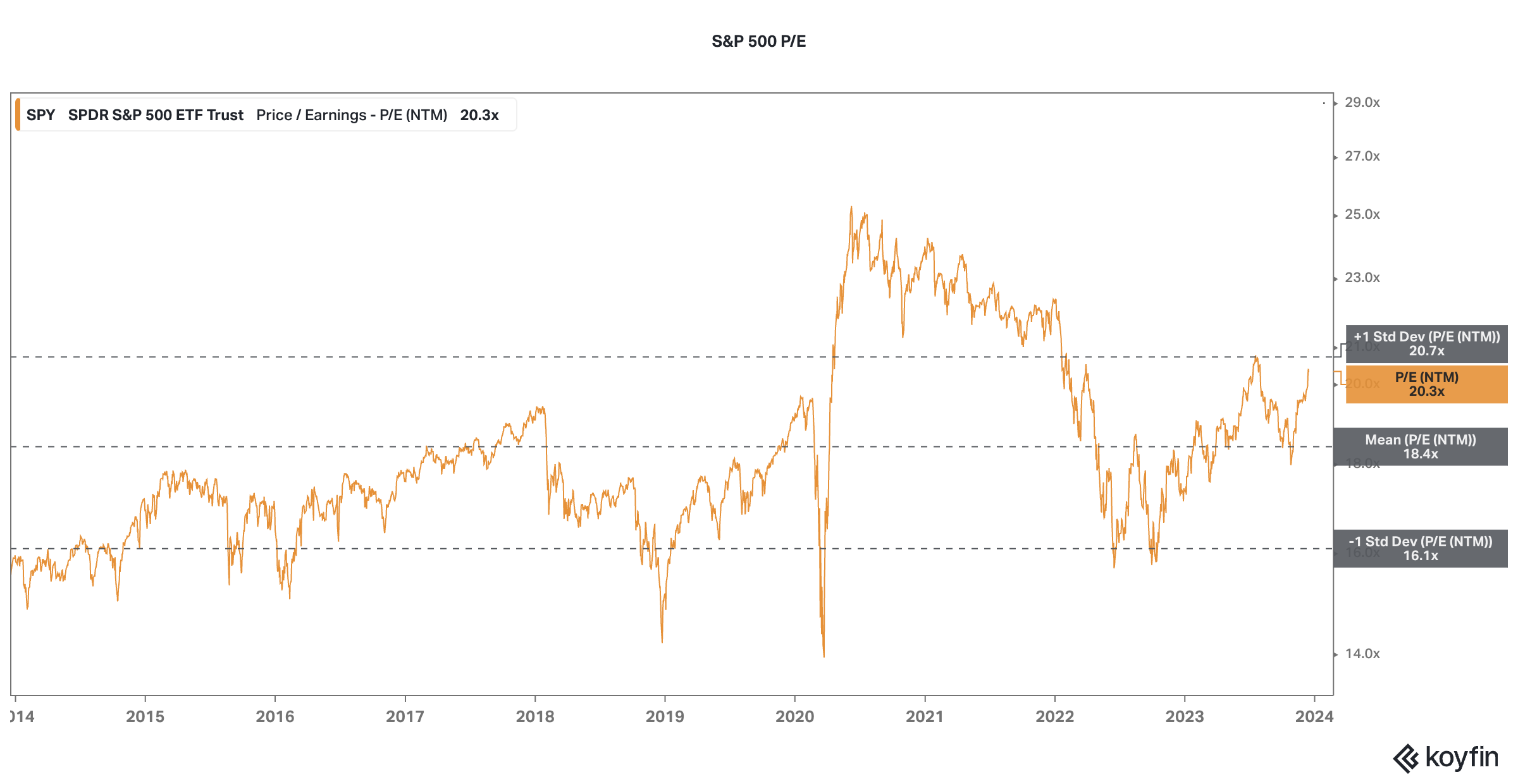 Broader market valuations are appearing somewhat stretched. See S&P 500 valuation chart below.